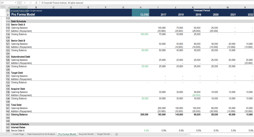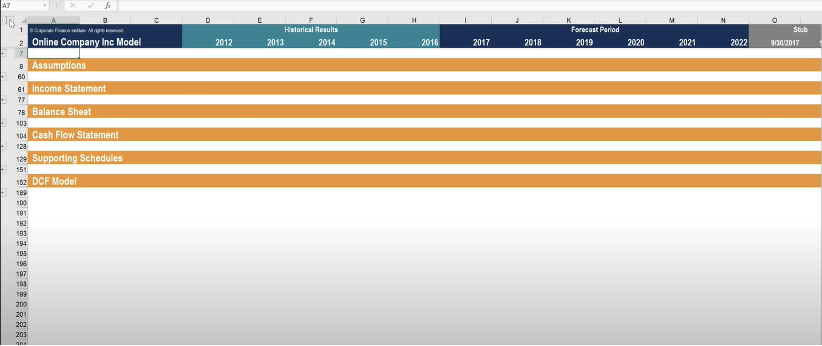 This model builds on both the Three Statement Model as well as the DCF Model and hence has all the standard components of a Three-Statement and DCF Model. The steps followed in a Merger Model include: