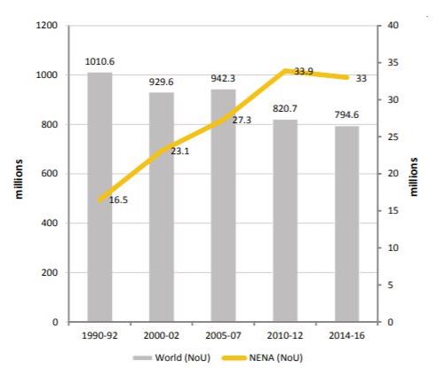 The Middle East and surrounding regions have always suffered from food insecurity when compared to the rest of the world. According to a report by the Food and Agricultural Organization (FAO) of the United Nations, “The number of chronically undernourished in the region has doubled from 16.5 million people in 1990–1992 to 33 million people in 2014–2016.”